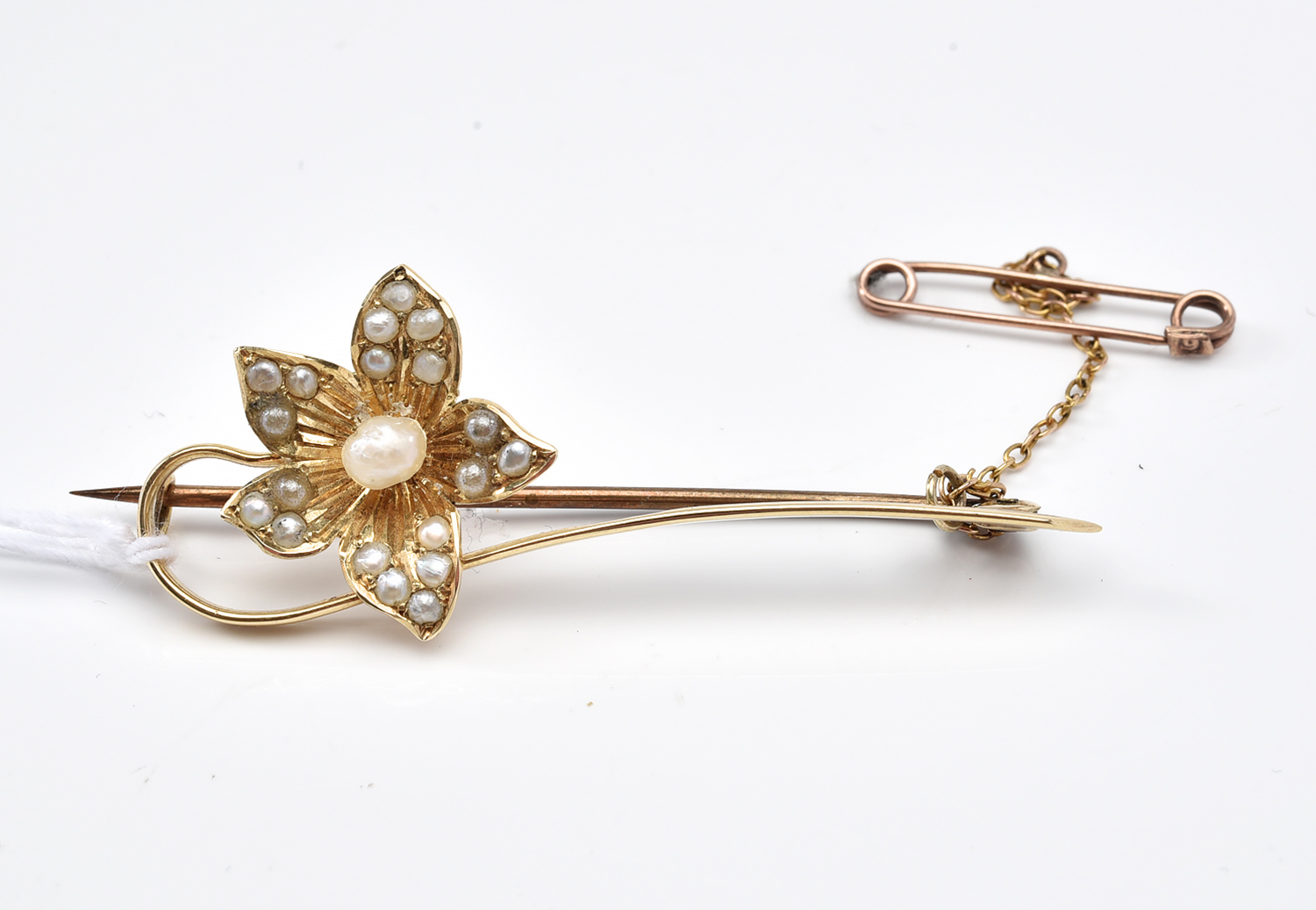 AN ANTIQUE NATURAL SEED PEARL BROOCH, AUSTRALIAN HALLMARKS, IN 15CT GOLD, 4.2GMS