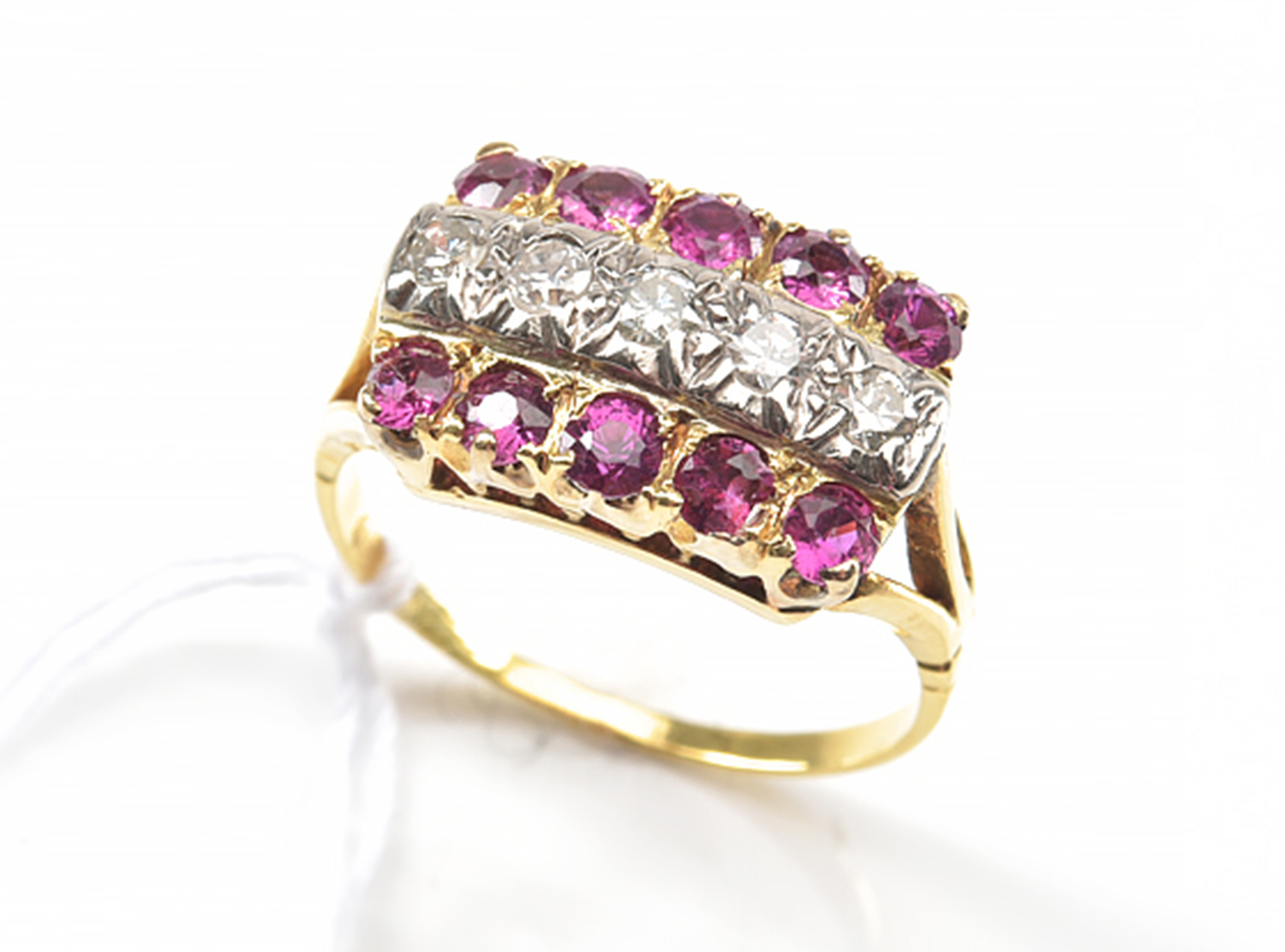 A RUBY AND DIAMOND RING IN 18CT GOLD, SIZE M, 4.5GMS