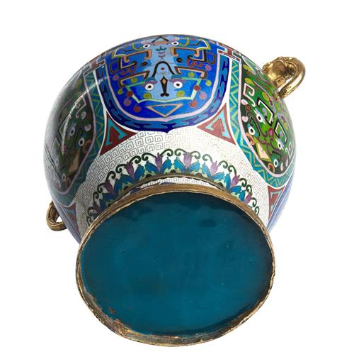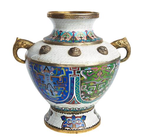A LARGE CHINESE CLOISONNE TWIN HANDLED VASE