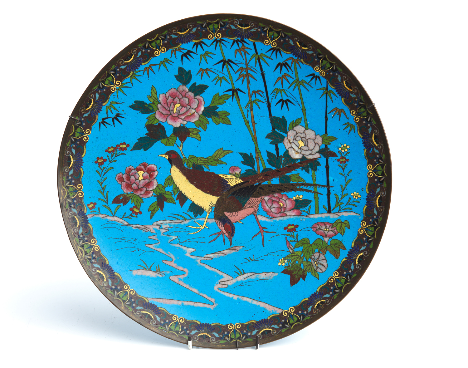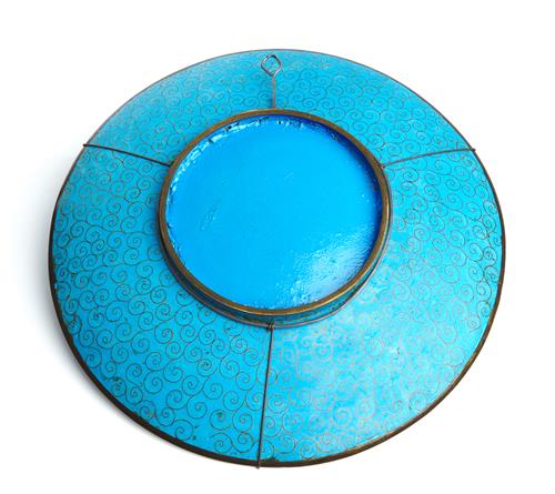Some stress cracks in the blue enamel ground, possibly caused during the manufacture.