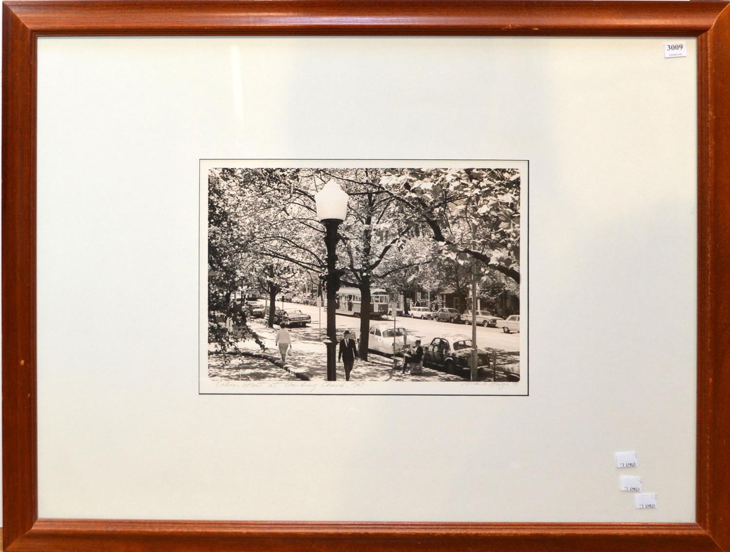 MARK STRIZIC, COLLINS STREET AT UNITING CHURCH 1967, SILVER GELATIN PHOTOGRAPH, PRINTED 1998, 25 X 36CM, FRAME SIZE: 65 X 84CM, CONDITION: VERY GOOD, MINOR WEAR TO FRAME