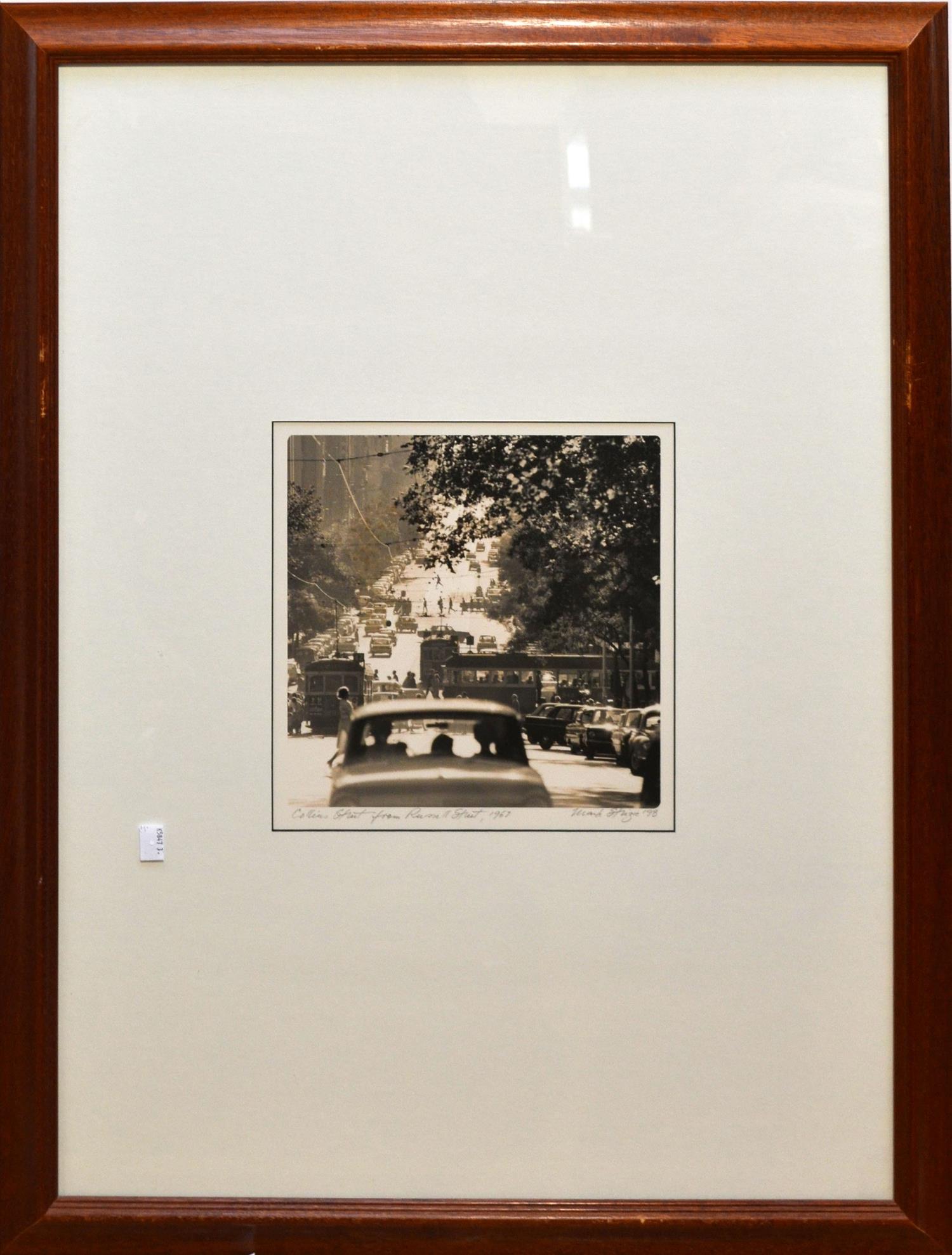 MARK STRIZIC, COLLINS STREET FROM RUSSELL STREET 1967, SILVER GELATIN PHOTOGRAPH, PRINTED 1998, 25 X 25CM, FRAME SIZE: 65 X 84CM, CONDITION: VERY GOOD, SCRATCHES TO FRAME