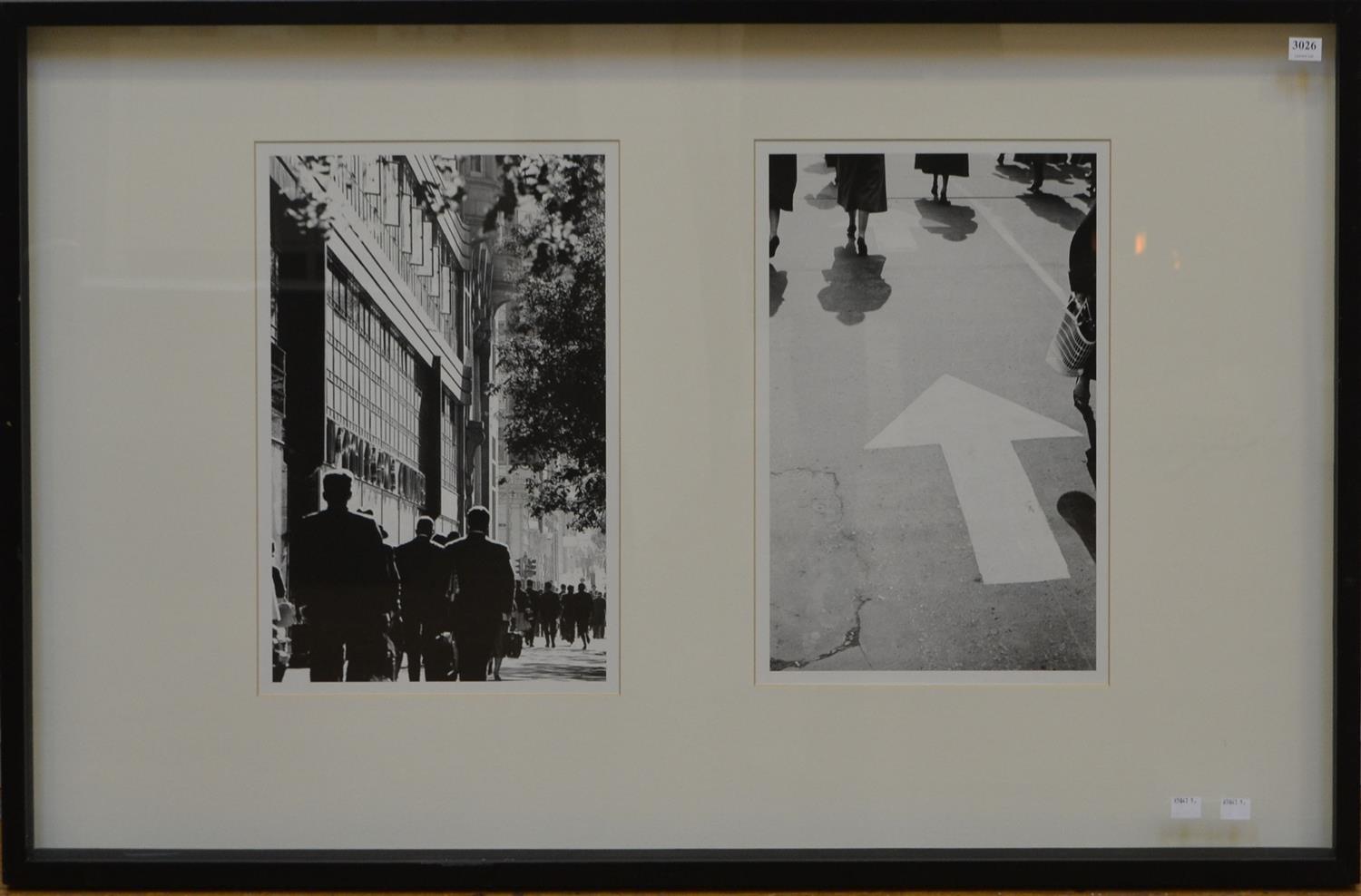 MARK STRIZIC, TWO WORKS, STREET CROSSING - 1 1956 AND UNTITLED, SILVER GELATIN PHOTOGRAPHS, UNSIGNED, 36 X 25CM (EACH), FRAME SIZE: 67.5 X 105CM, CONDITION: VERY GOOD, WELL FRAMED