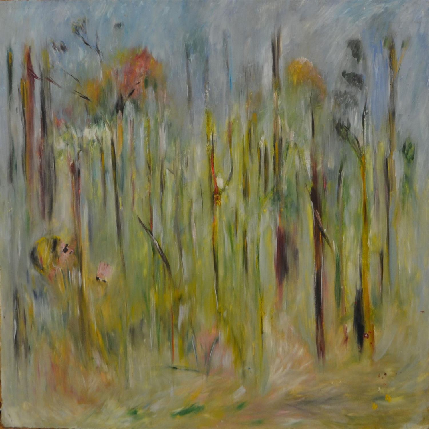 SCHOOL OF BOYD, MAN IN THE WOODS, OIL ON MASONITE, UNSIGNED, 61 X 61CM, UNFRAMED,