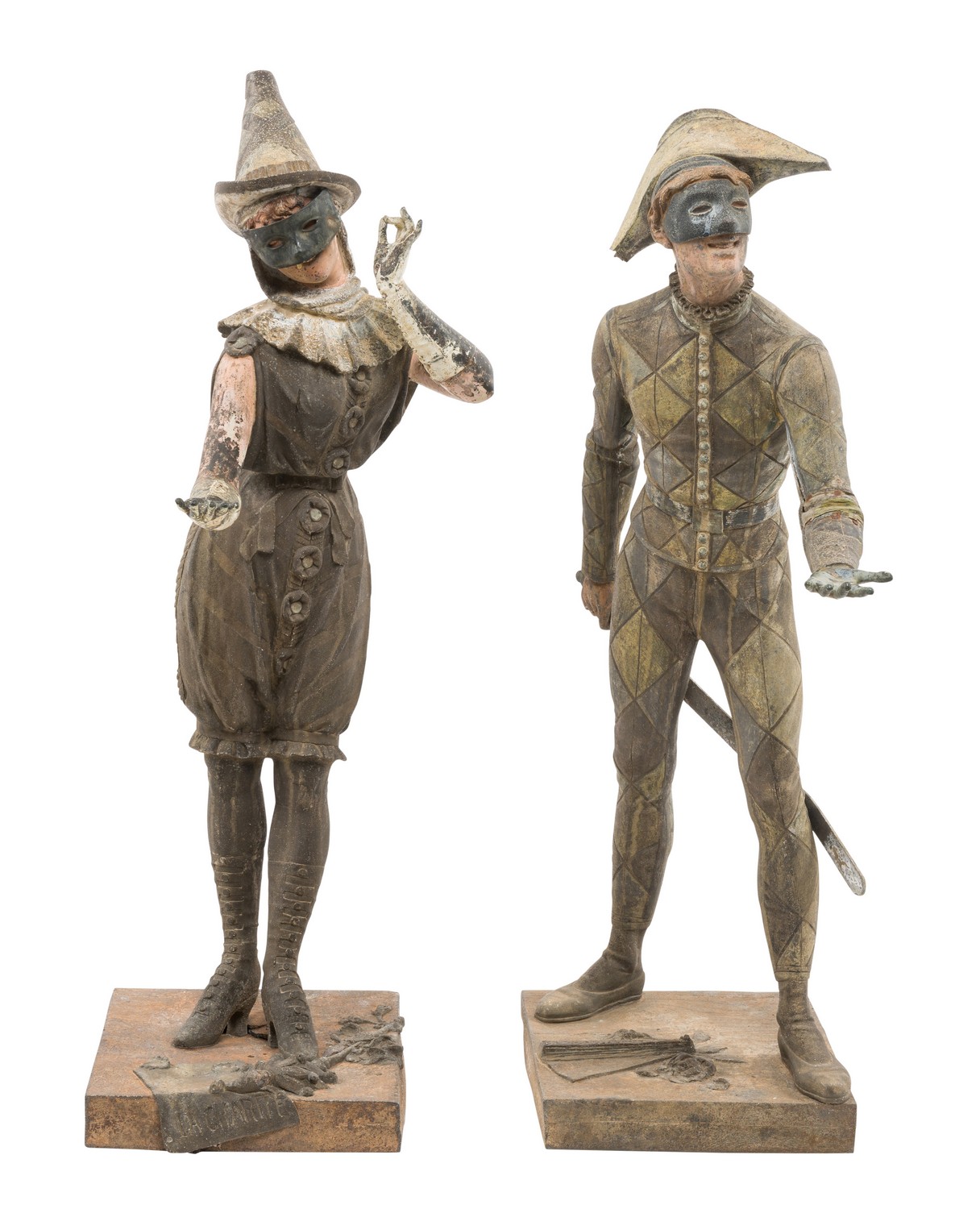 A PAIR OF COLD-PAINTED SPELTER HARLEQUIN FIGURES
