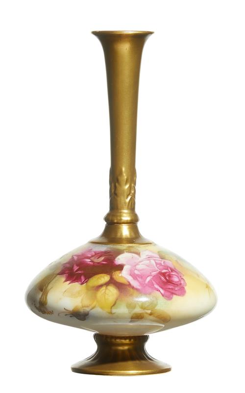 Painted with sprays of pink and red cabbage roses. Printed factory marks. Shape number 1748.