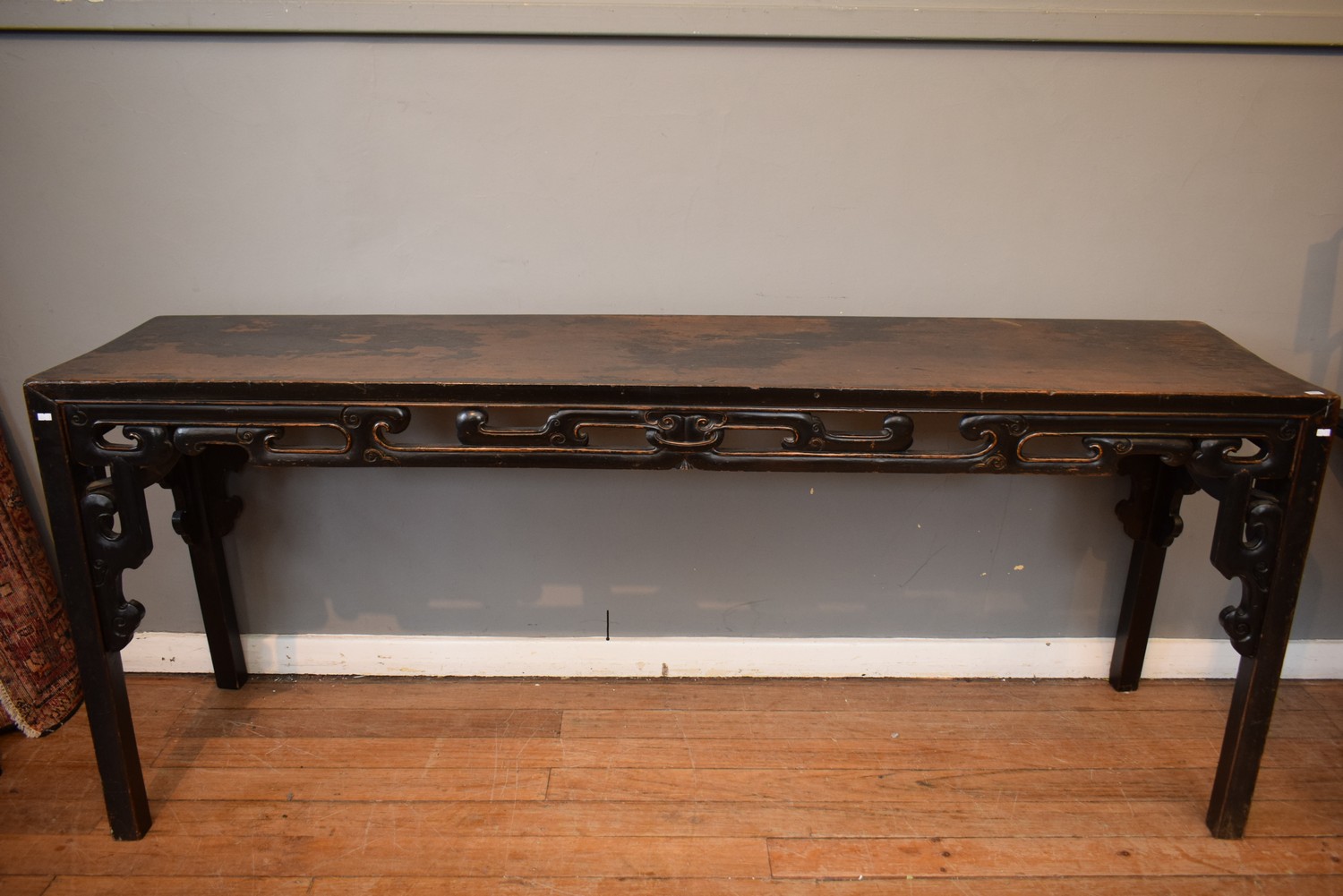 A SUBSTANTIAL CHINESE HALL CONSOLE (A/F) (94H X 229W X 51D CM)