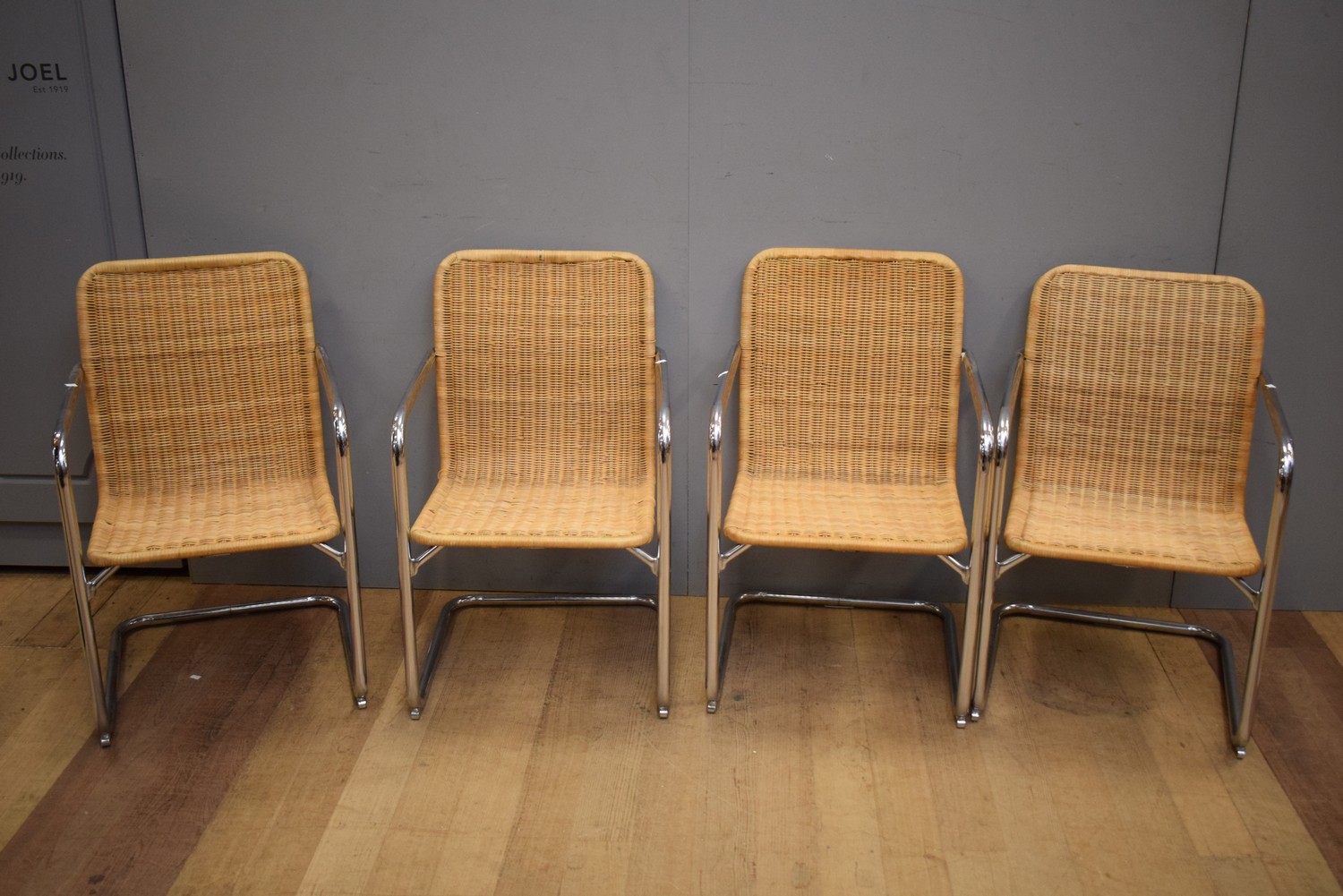 A SET OF FOUR BRUNO MATHESON STYLE CHAIRS (A/F) (81H X 51W X 55D CM)
