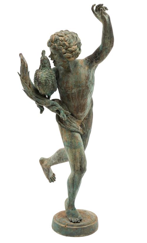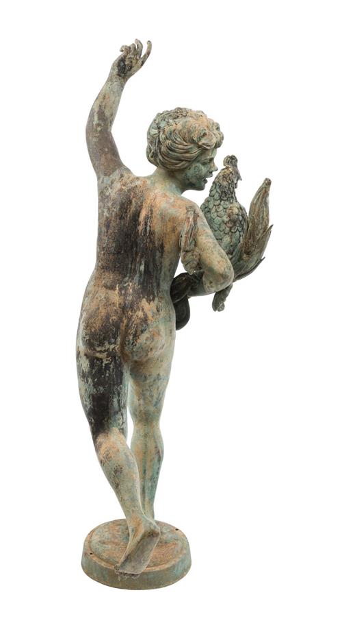 A PATINATED BRONZE FIGURAL GARDEN STATUE