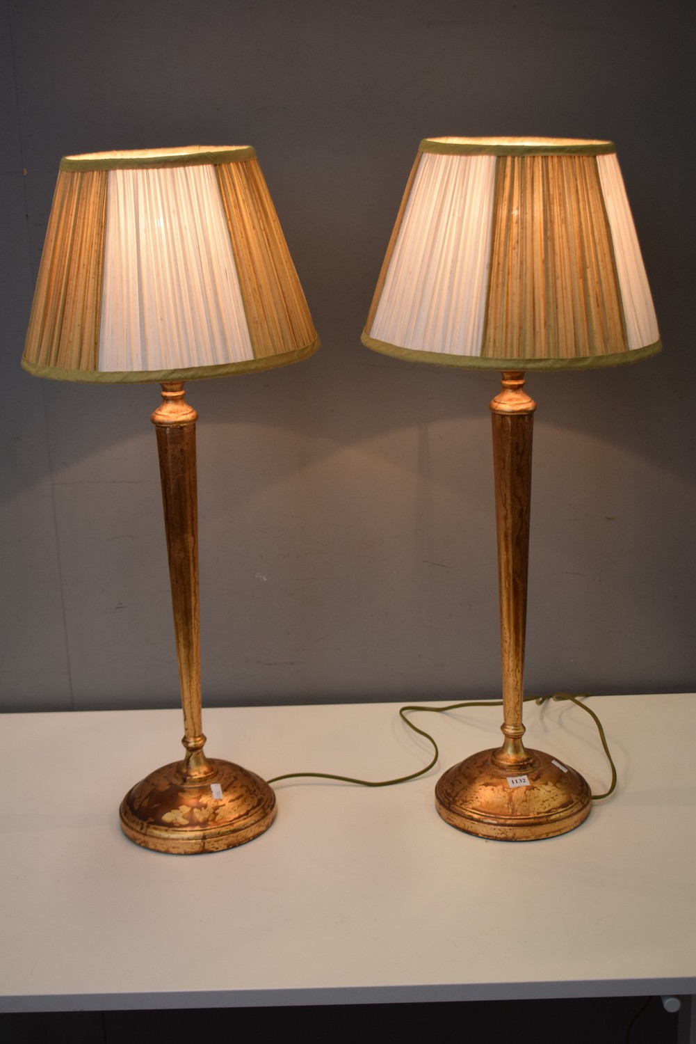A PAIR OF GILT EFFECT CLASSICAL STYLE TABLE LAMPS (80 CM H)