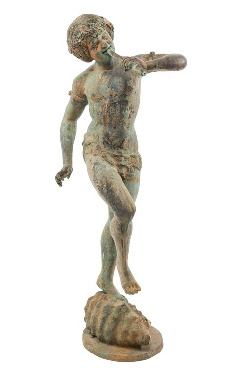 A PATINATED BRONZE FIGURAL GARDEN STATUE