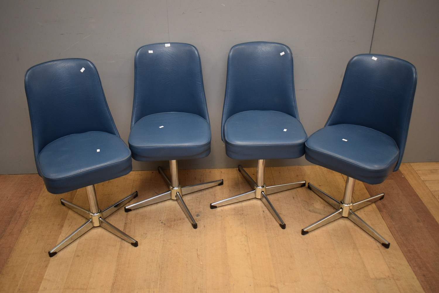 A SET OF FOUR MID-CENTURY SWIVEL CHAIRS (83H X 46W X 49D CM)