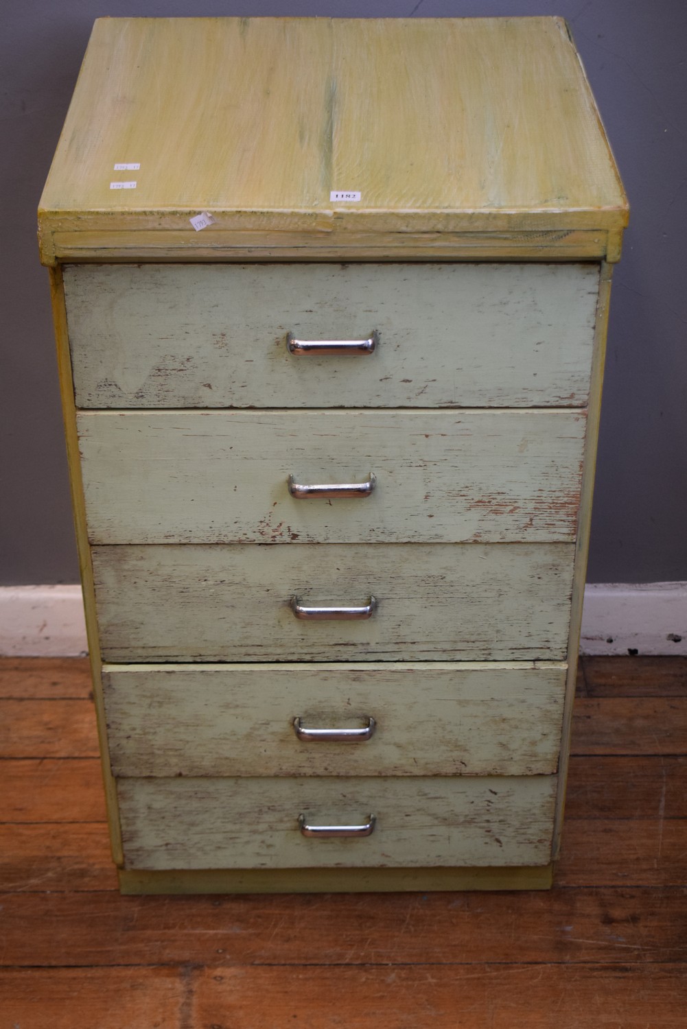 A RUSTIC FIVE DRAWER SET OF DRAWERS (86H X 49W X 46D CM)