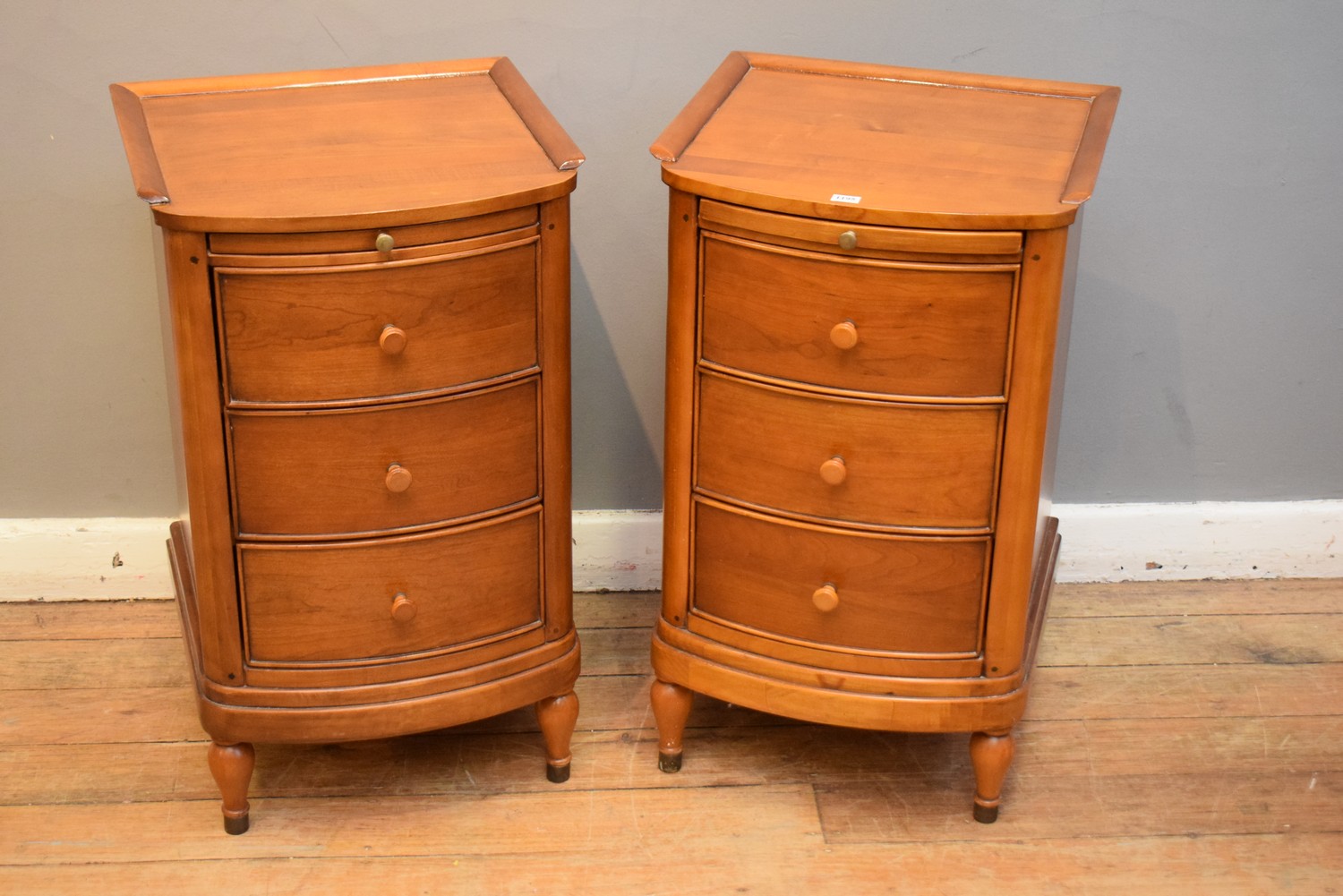 A PAIR OF ENGLISH OAK THREE DRAWER BEDSIDES BY WILLIS AND GAMBIER (69H X 41W X 43D CM)