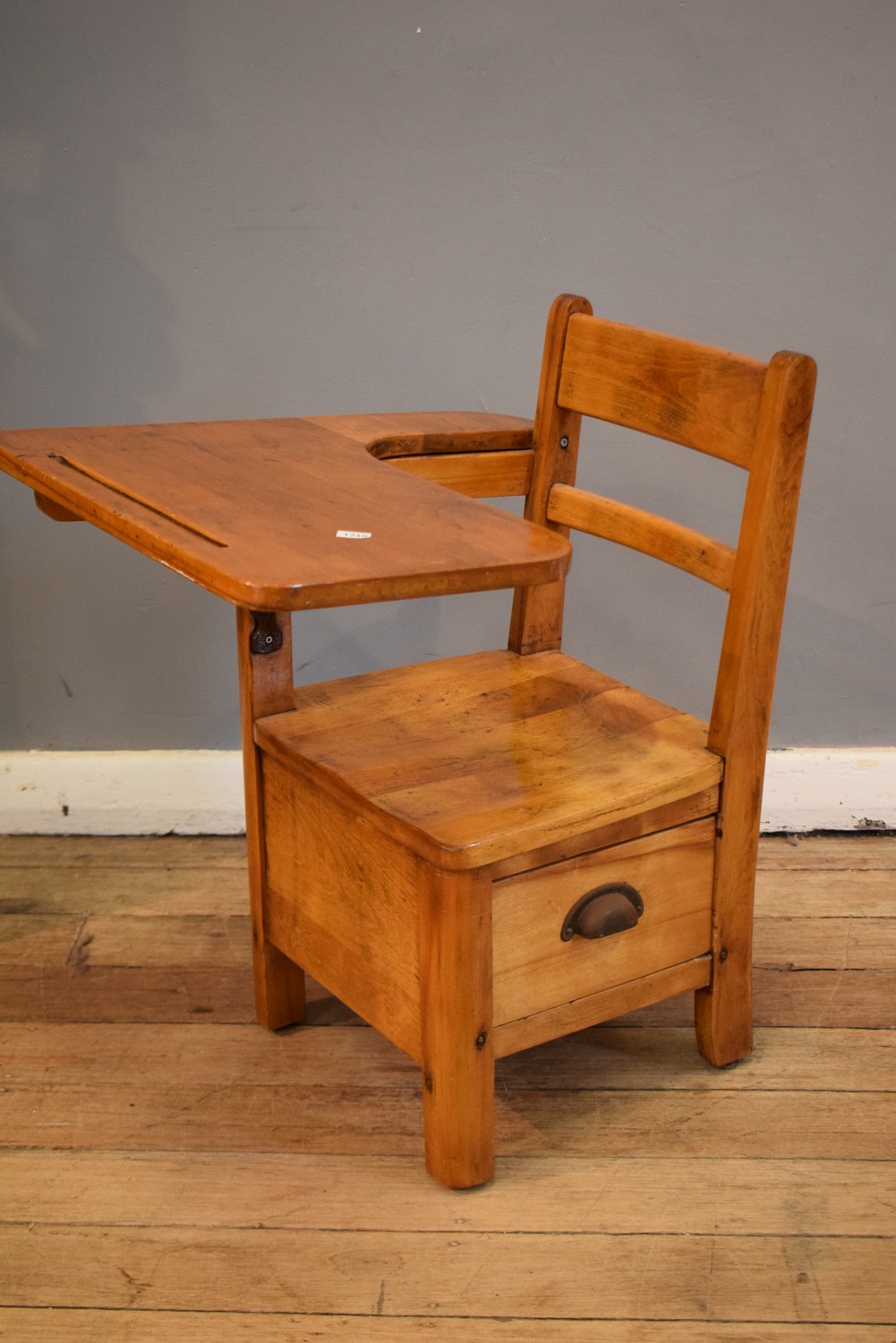 A VINTAGE CHILDREN'S SCHOOL DESK AND CHAIR WITH DRAWER (67H X 51W X 57D CM)