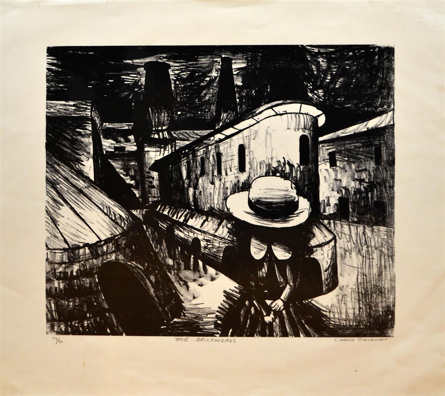 CHARLES BLACKMAN, THE BRICKWORKS, LITHOGRAPH 79/90, 56 X 61CM (SHEET SIZE), WORK IS UNFRAMED BUT BACKED AND WRAPPED IN PLASTIC, CONDITION: VERY GOOD, SOME SMALL BROWN MARKS TO SHEET