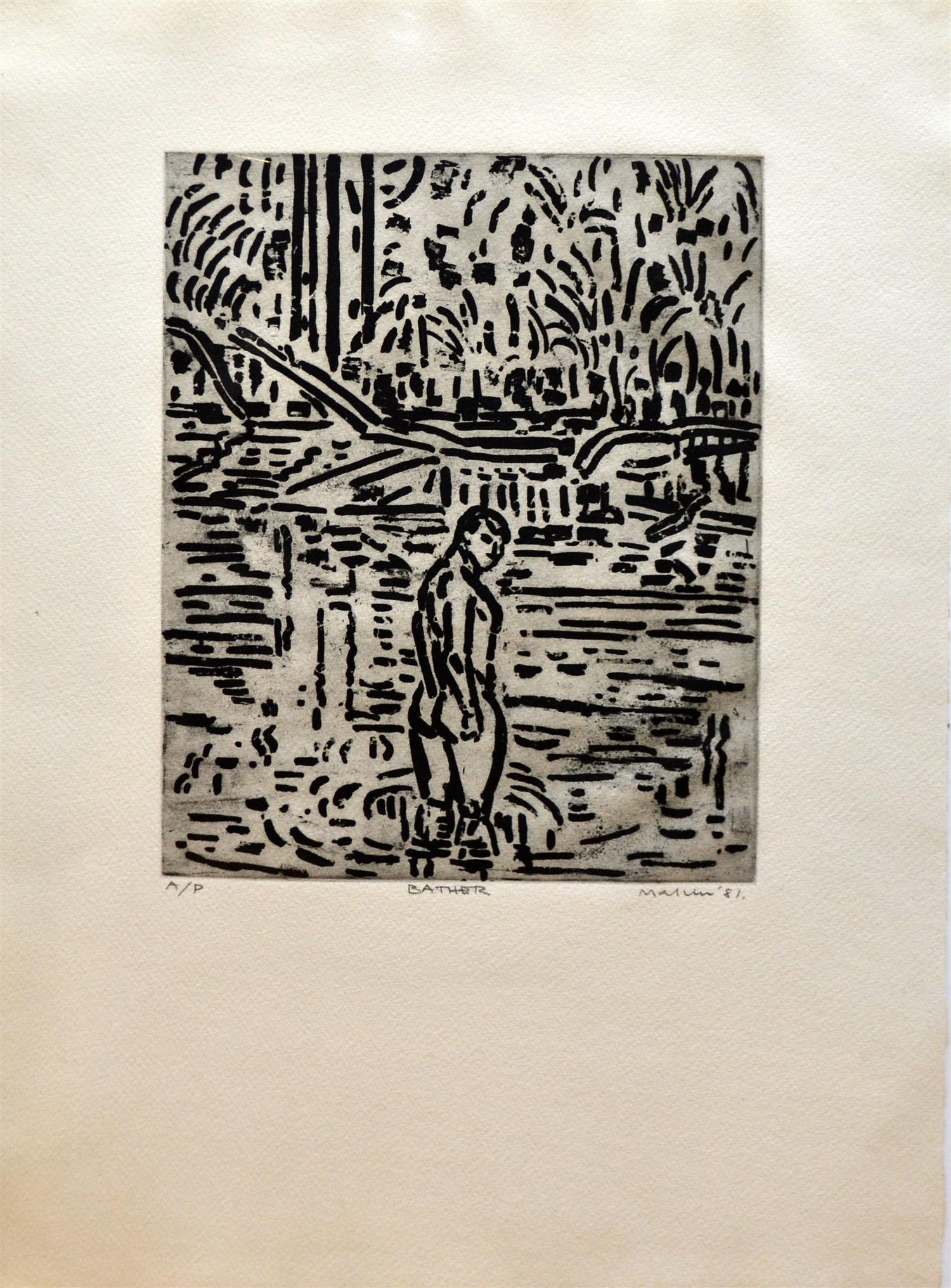 JEFF MAKIN, BATHER 1981, ETCHING A/P, 66 X 48CM (SHEET SIZE), WORK IS UNFRAMED BUT BACKED AND WRAPPED IN PLASTIC, CONDITION: VERY GOOD