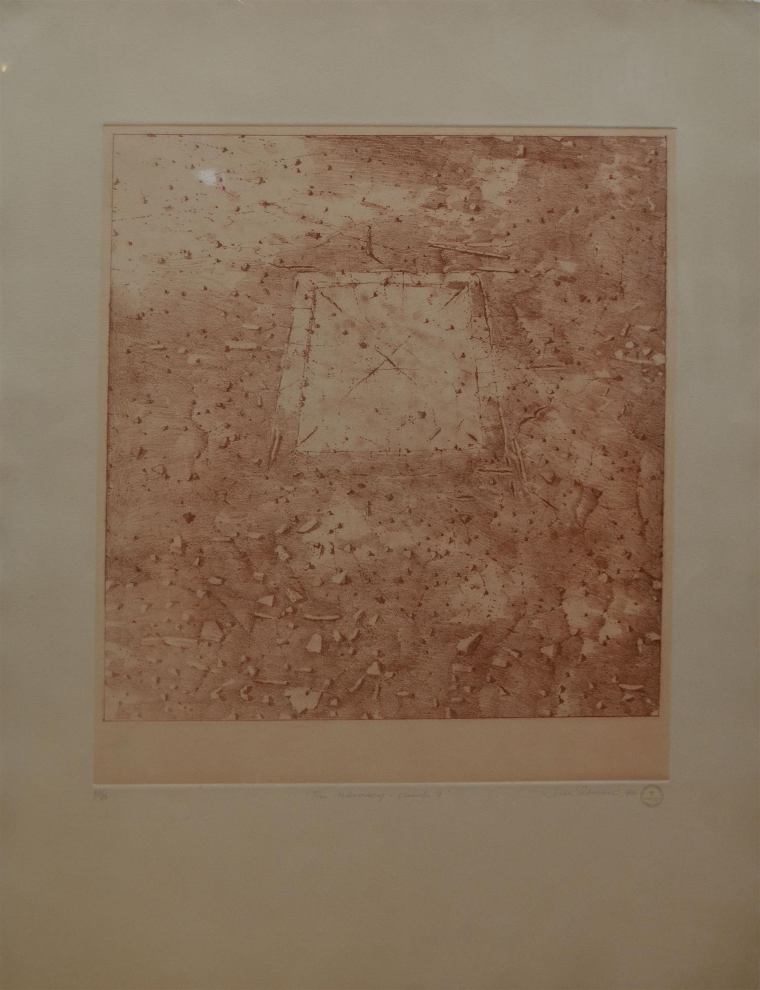 TIM STORRIER, THE MEMORY -CAMP 7 1977, ETCHING 61/76, 79 X 59CM (SHEET SIZE), WORK IS UNFRAMED BUT BACKED AND WRAPPED IN PLASTIC, CONDITION: LIGHT DISCOLOURATION TO PAPER, CONSISTENT WITH AGE