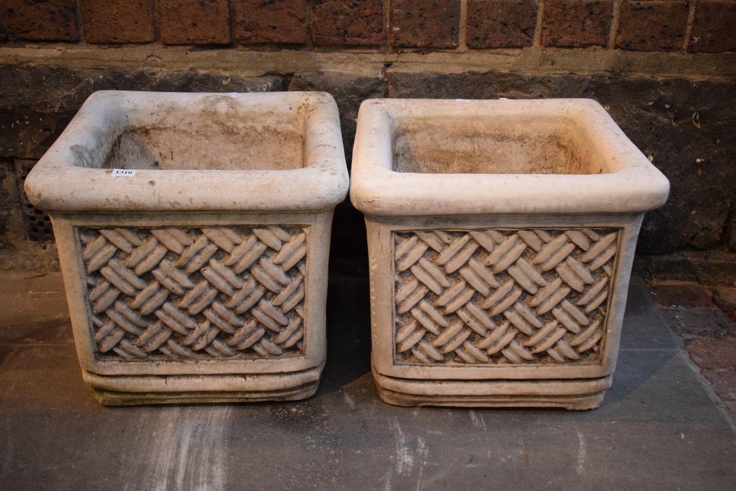 A PAIR OF CONCRETE PLANTERS (34H X 37W X 37D CM) (PLEASE NOTE THIS ITEM MUST BE REMOVED BY CLIENTS OR CARRIERS AT THE CUSTOMERS EXPENSE)