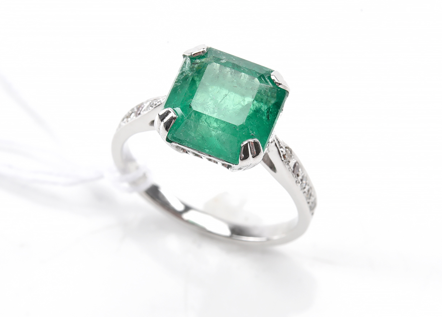 AN ALEXANDRITE AND DIAMOND RING Featuring an oval alexandrite weighing 4.13cts, flanked by round brilliant cut diamonds totalling 0....