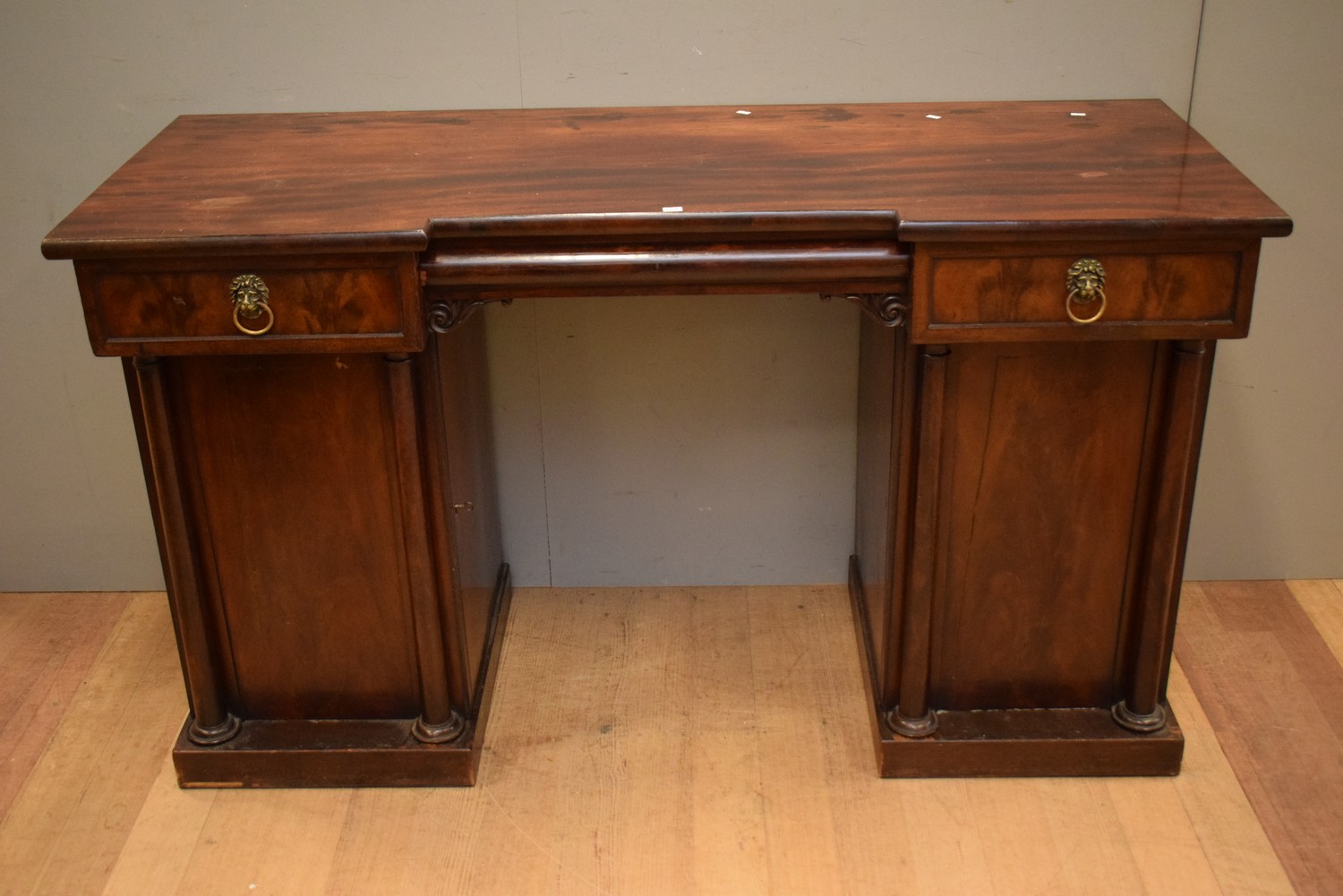 A REGENCY STYLE TWIN PEDESTAL SIDEBOARD (A/F) (96H X 123W X 63D CM)