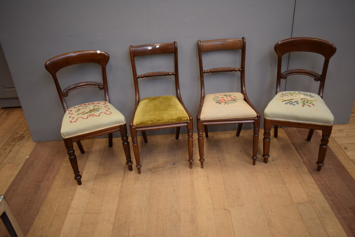 FOUR VICTORIAN STYLE CHAIRS, SOME WITH TAPESTRY SEATS (A/F)