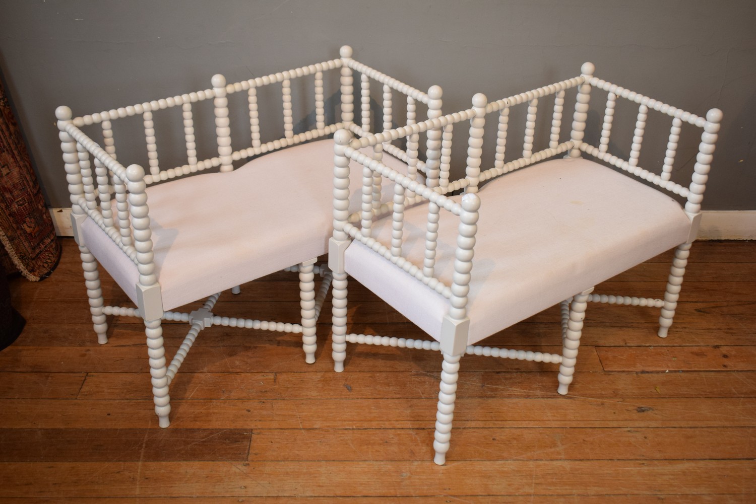 A PAIR OF WHITE PAINTED HALL CHAIRS (68H X 82W X 44D CM)