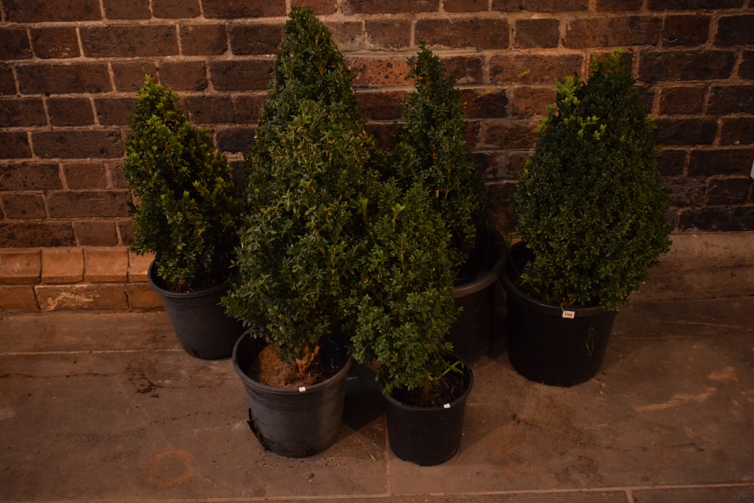 SIX ENGLISH BOX TOPIARYS (TALLEST 90CM)
