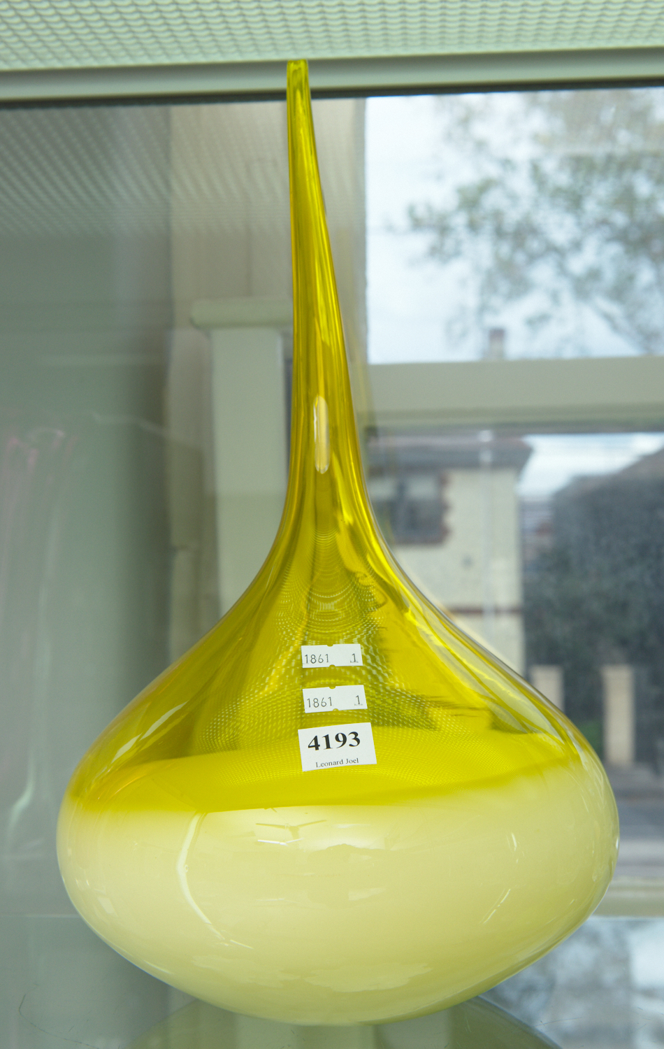 A YELLOW ART GLASS VASE H.36CM