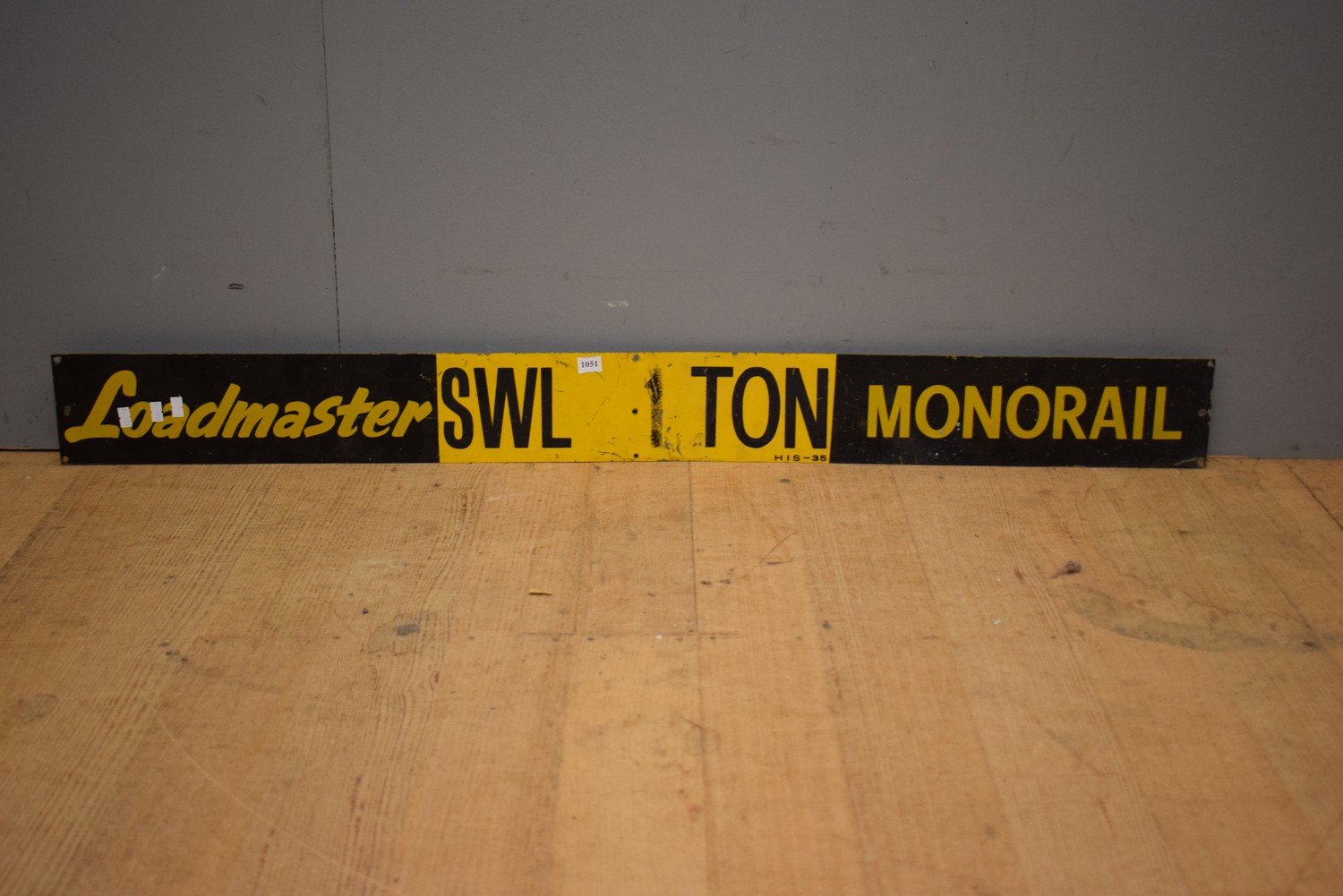 A LONG LOADMASTER SWL 1 TON MONORAIL TIN SIGN (122CM LONG)