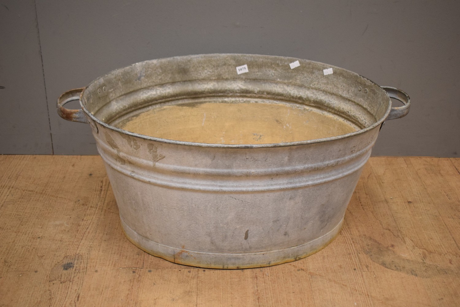 A 1920S GALVANISED BABY BATH WITH TWO FIXED HANDLES (30H X 70W X 47D CM)