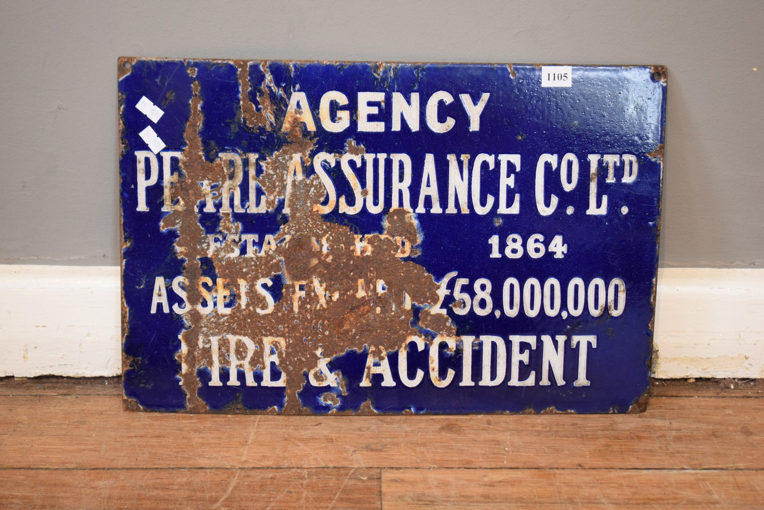 AN 1860S ENAMEL SIGN 'PEARL ASSURANCE CO LTD - FIRE & ACCIDENT' (31H X 46W CM)