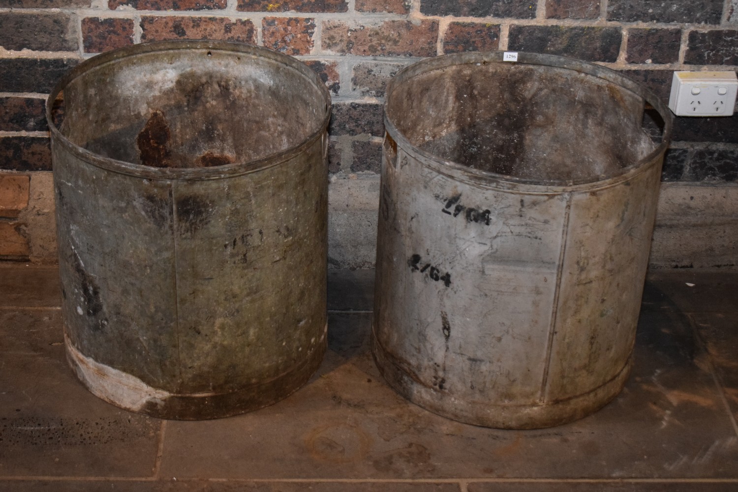 TWO METAL STORAGE BINS (A/F) (51H X 51DIAM CM)
