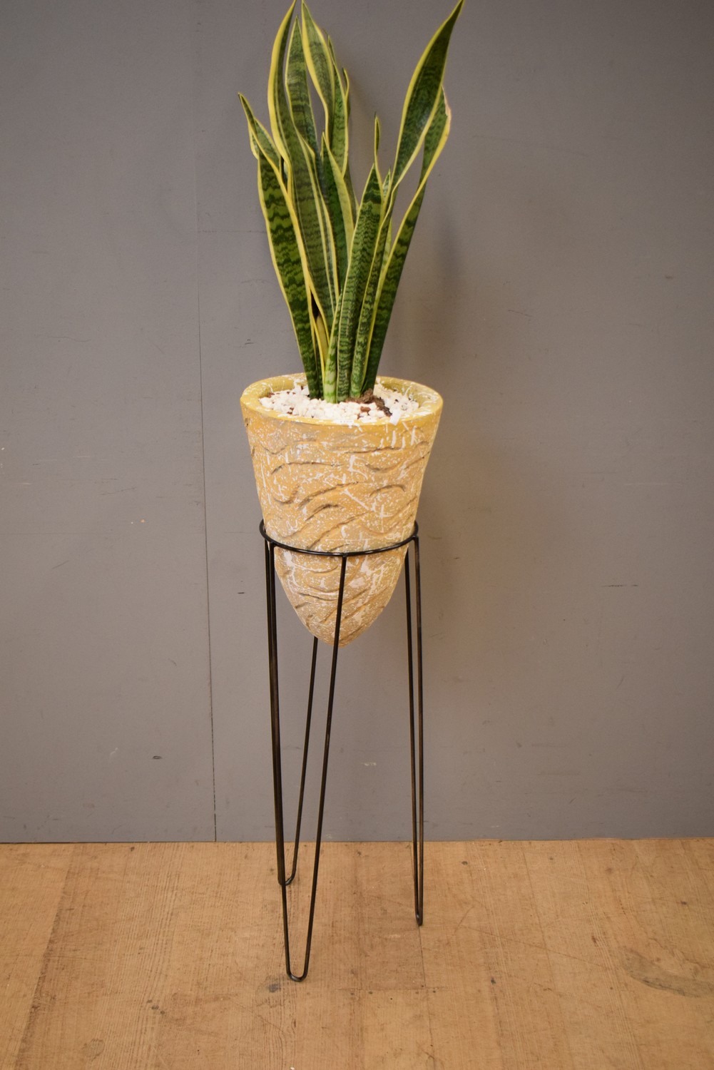 A MID-CENTURY CONICAL POT WITH PLANT ON STAND (57H X 29W CM)