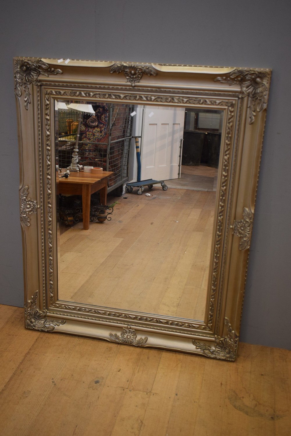 A DECORATIVE WALL MIRROR WITH SILVER FINISH (135H X 110W CM)