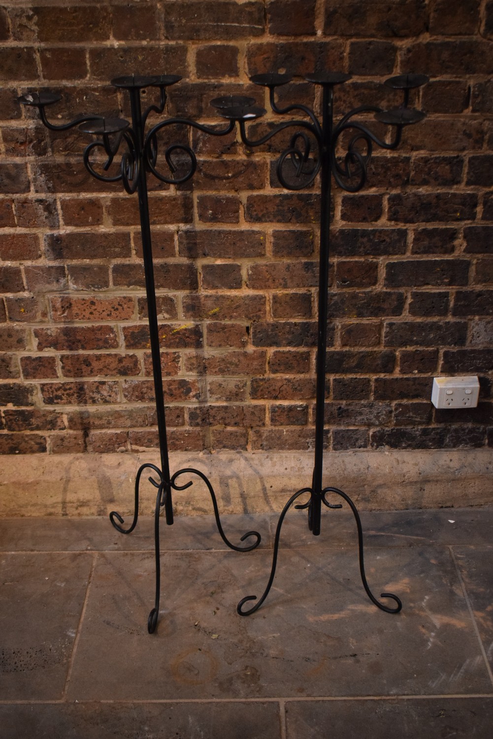 A PAIR OF METAL CANDLEABRAS (130 CM HIGH)