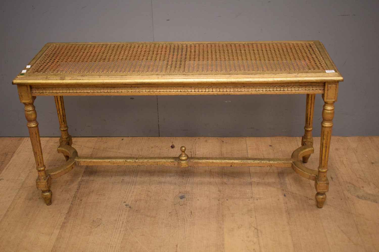 AN ADAM STYLE RATTAN HALL SEAT WITH GILT FINISH (50H X 100W X 35D CM)