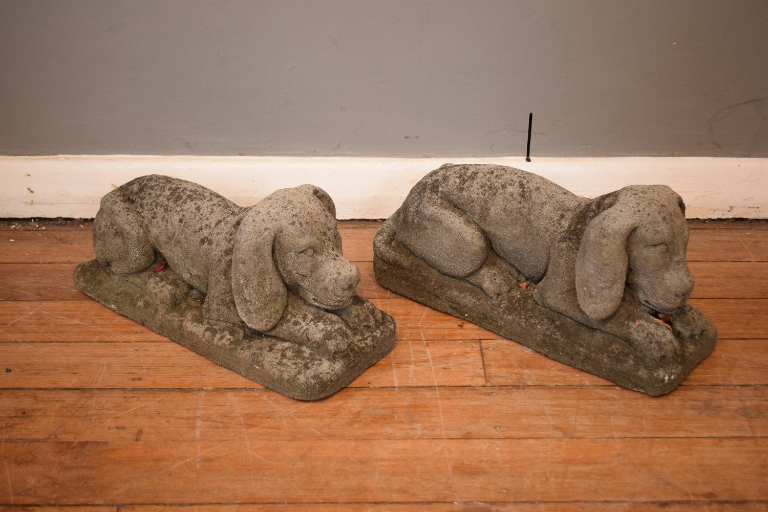 A PAIR OF CONCRETE DOGS (23H X 48W CM)