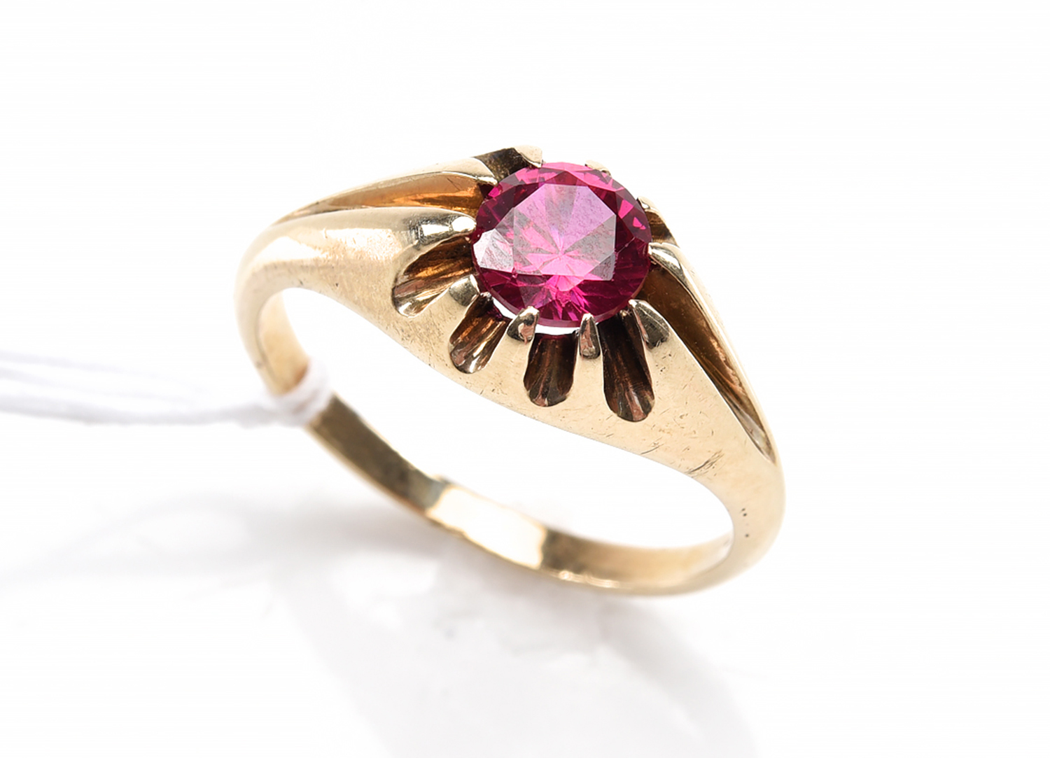 A GENTLEMAN'S RING WITH CLAW SET RED STONE, IN 9CT GOLD, 5.3 GMS, SIZE U