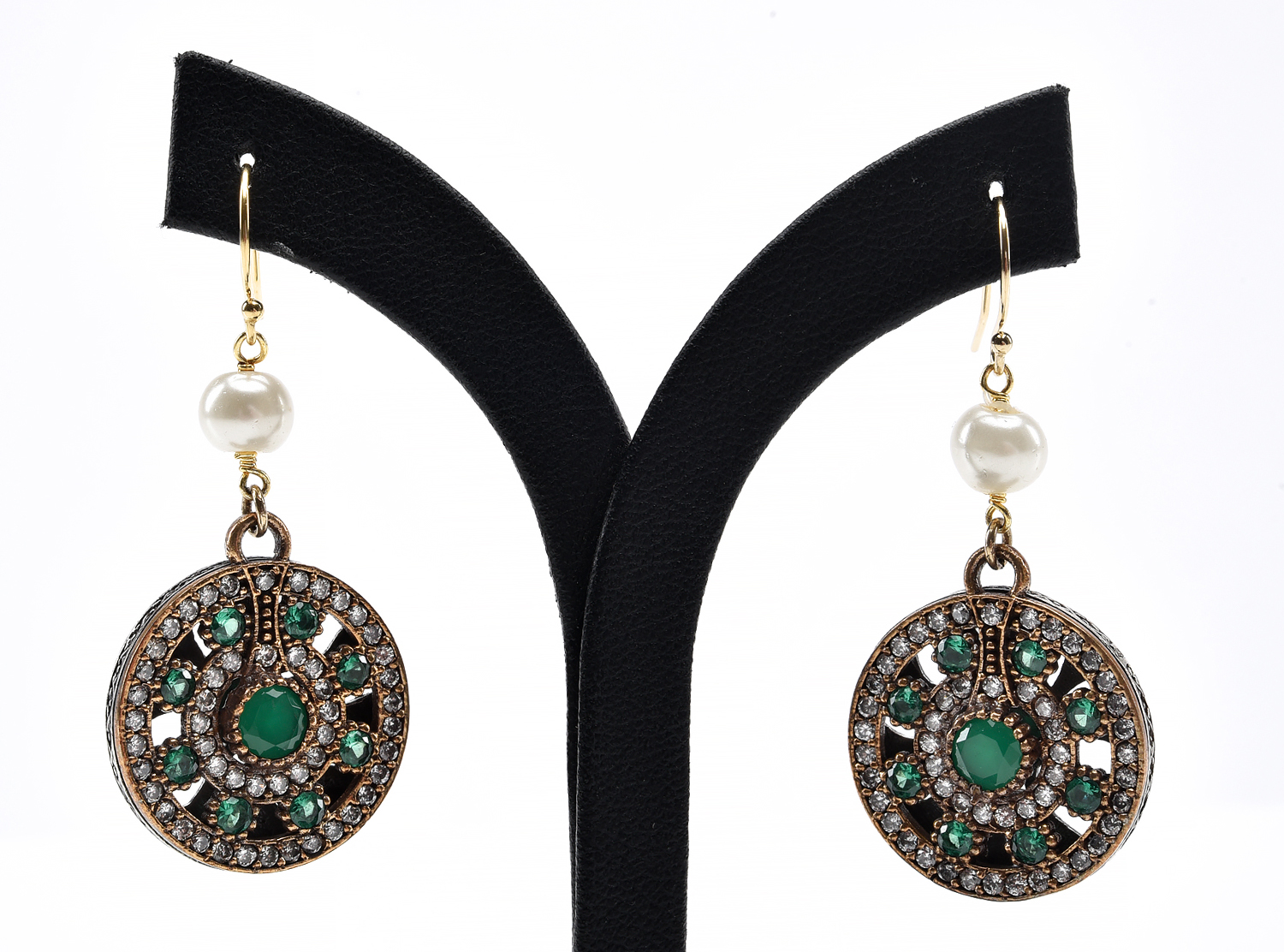 A PAIR OF PASTE SET EARRINGS TO SHEPHERD HOOK FITTINGS IN SILVER GILT