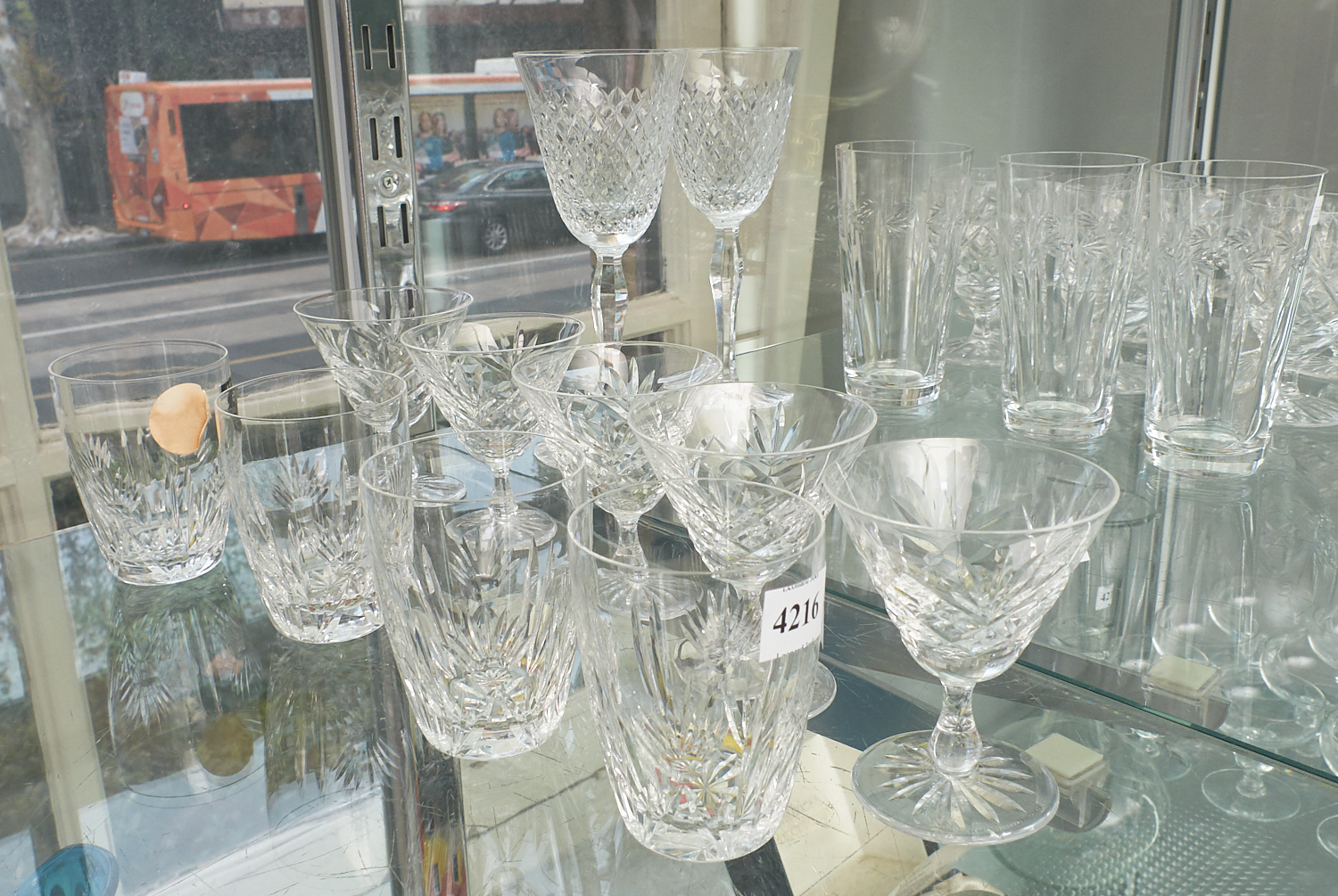 A COLLECTION OF ENDINBURGH CRYSTAL STEMWARE AND TUMBLERS TOGETHER WITH A PAIR OF STUART CRYSTAL WINES