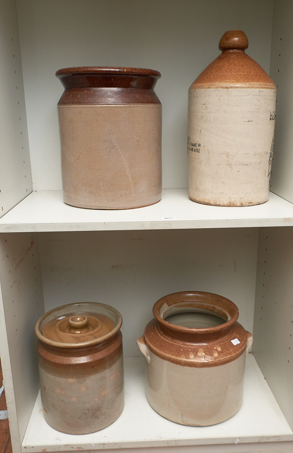 A COLLECTION OF FOUR EARLY 20TH CENTURY AUSTRALIAN STONEWARE POTS AND DEMIJOHN