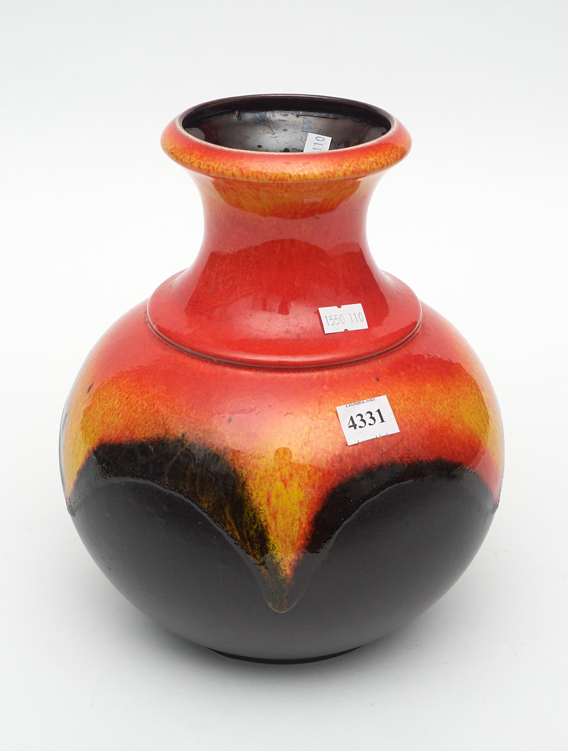 A RETRO GERMAN BAY 66-25 ORANGE AND BLACK FAT LAVA HANDLED VASE H.26CM