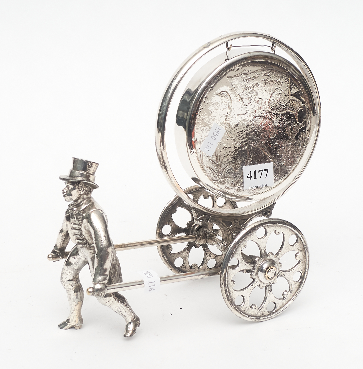 A 19TH CENTURY AMERICAN SILVERPLATE EMU ADORNED TABLE SERVANTS GONG (NO MALLET) H.22CM