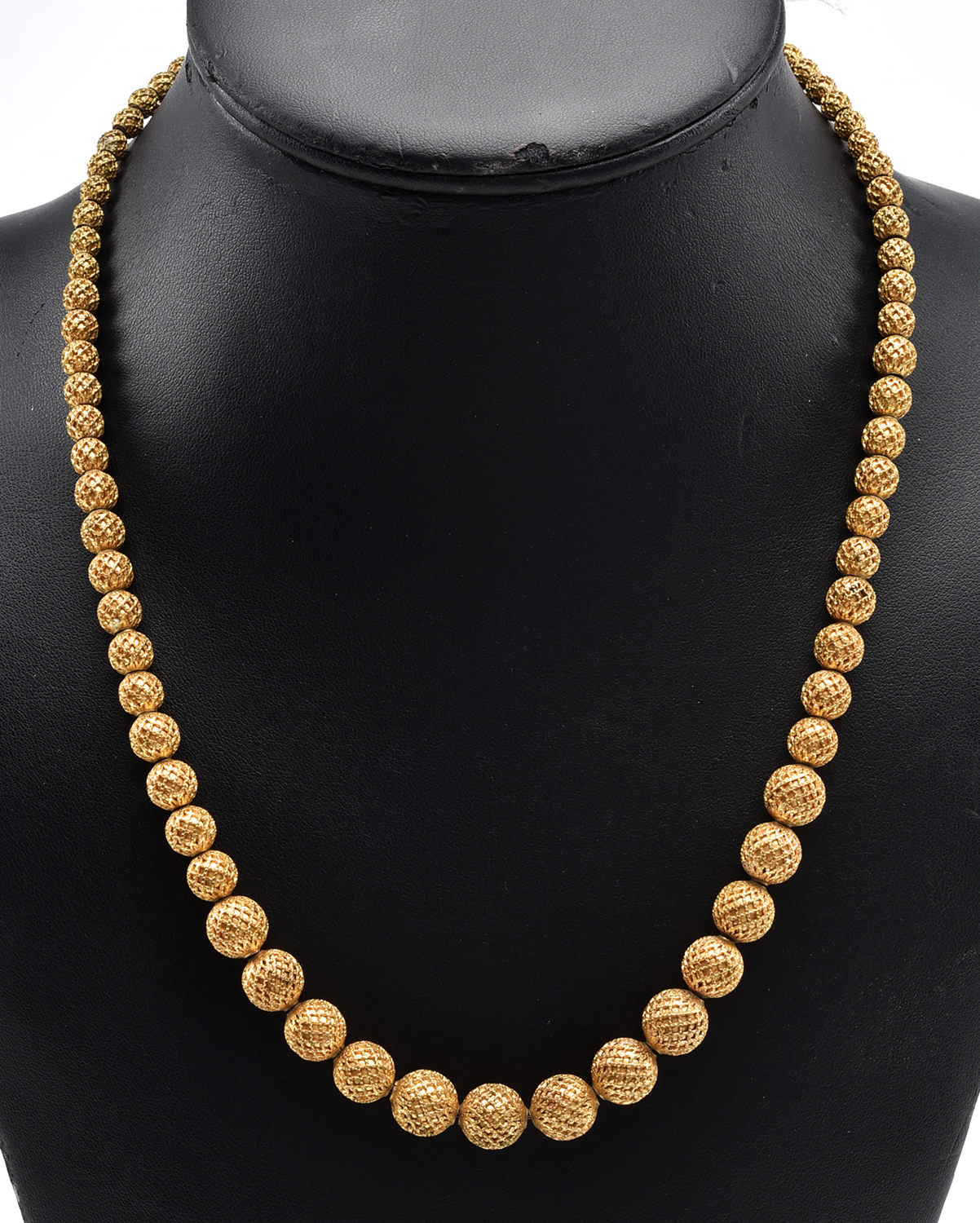A STRAND OF GRADUATED PINCHBECK BEADS