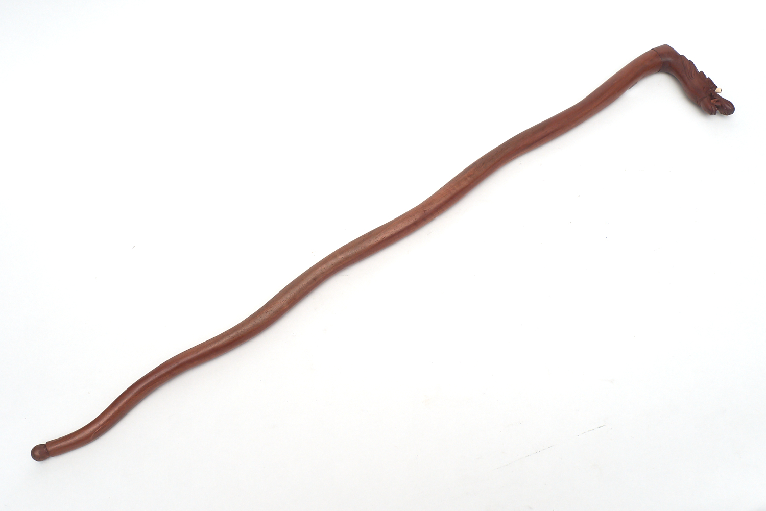A 1940S CARVED WOODEN DRAGON HEAD WALKING STICK L.88CM