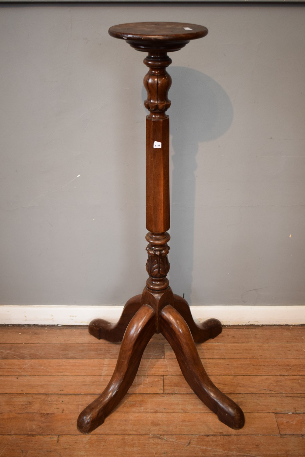 A LARGE CARVED TIMBER PEDESTAL (127H X BASE 90W CM)