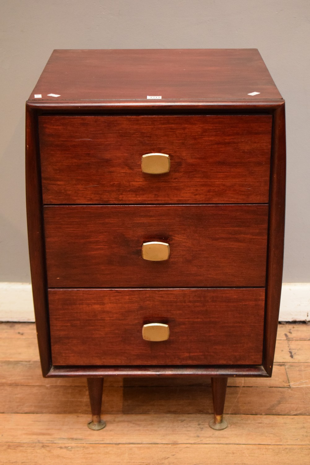 A MID-CENTURY THREE DRAWER BEDSIDE CHEST (69H X 47W X 47D CM)