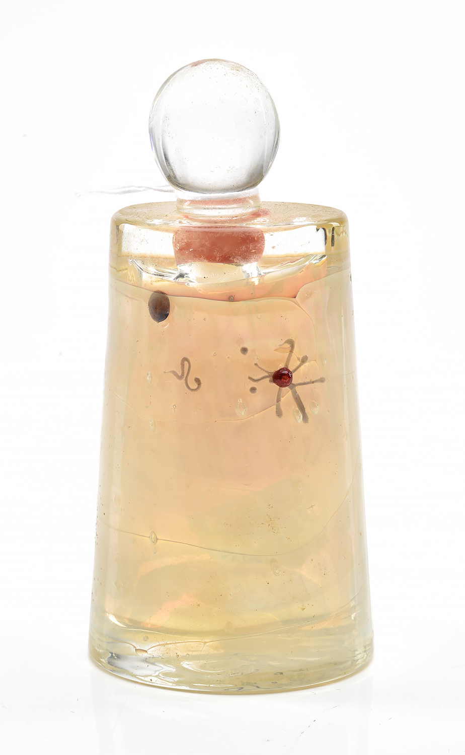 A VINTAGE HANDCRAFTED GLASS PERFUME BOTTLE, HEIGHT 10CM