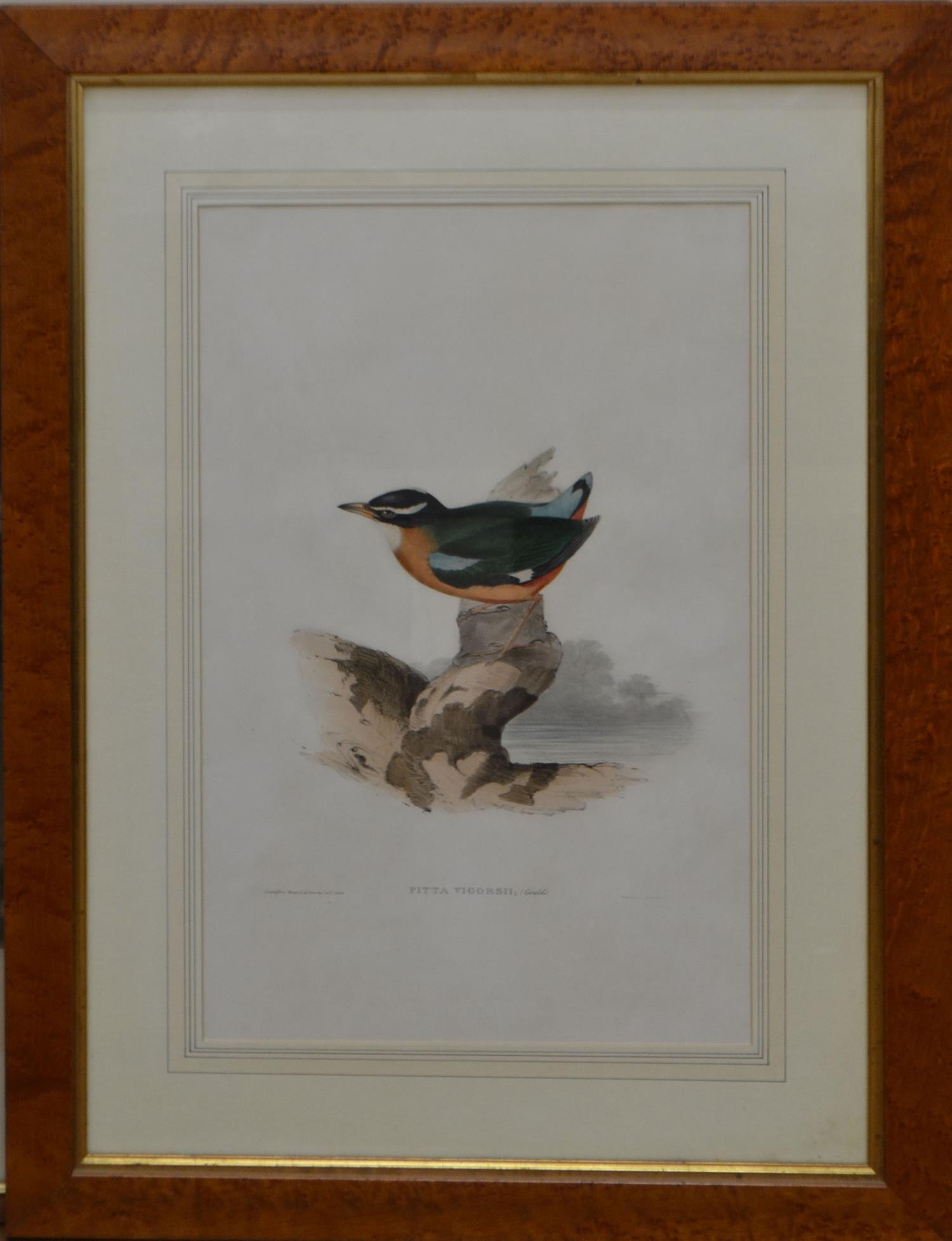 JOHN GOULD, PITTA VIGORSII, HAND COLOURED LITHOGRAPH, 51 X 33CM, FRAME SIZE: 75 X 57CM, CONDITION: MINOR HANDLING MARKS, SLIGHT DISCOLOURATION TO PAPER
